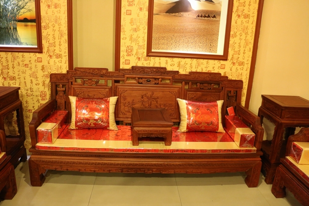 而今天,筆者要給大家介紹的這一款紅木家具沙發(fā)——福臨門沙發(fā),正是一款為了表達(dá)人們這一初衷和愿望,用以其承載美好的向往和精神寄托的上等紅木沙發(fā)。該款沙發(fā)同樣采用的是福林堂紅木所擅長(zhǎng)的優(yōu)質(zhì)緬花而制作,整體做工表現(xiàn)精良精湛,雕刻圖案豐富多樣,筆鋒縱橫飽滿有力,在沙發(fā)的正面,高幾、角幾各處以及小平幾的上方還刻畫了許多以昭示"福到"之意的優(yōu)美圖畫圖案,古人們神話故事傳說中的宏偉事跡等,用手輕撫摸之,給人以身臨其境之感,畫面代入感極其強(qiáng)烈,可以感受到,那畫筆縱橫交錯(cuò)的洶涌的海水,蜿蜒有秩形態(tài)各異的各種古器法寶圖案,還有那原木所自帶散發(fā)出來的淡淡的清香,古樸而讓人難以釋懷忘卻。